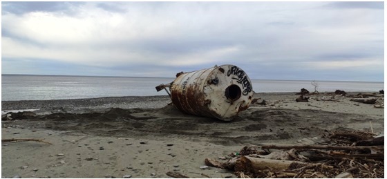 Η ΑΓΕΤ επίσης πρέπει να ενημερωθεί και να απομακρύνει το μεταλλικό σιλό από την παραλία. Ένα μηχάνημα έργου, έκανε την προσπάθεια και το τράβηξε πιο έξω, αλλά πρέπει να απομακρυνθεί άμεσα, τονίζει.