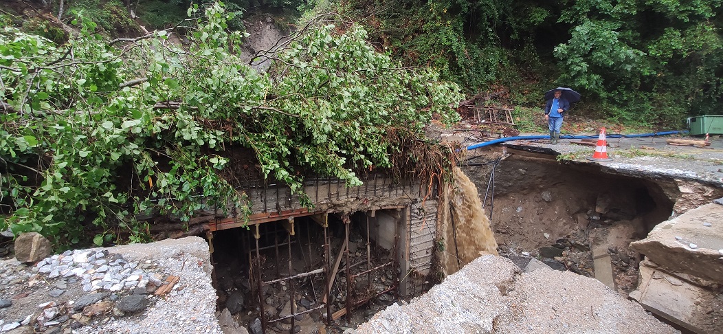 Στο σημείο είχε πραγματοποιηθεί ξανά καταστροφή στην πλημμύρα του 2018 και η πρόσβαση είχε αποκοπεί. Το ίδιο είχε ξαναγίνει στην πλημμύρα του 1986. Τότε, η παλιά γέφυρα καταστράφηκε και η γέφυρα αντικαταστάθηκε με απλούς σωληνωτούς οχετούς που δεν άντεξαν το υδραυλικό φορτίο, έφραξαν με φερτά και το ρέμα χύθηκε πάνω από τον δρόμο προξενώντας πολλές καταστροφές στο δρόμο και κατάντη του.