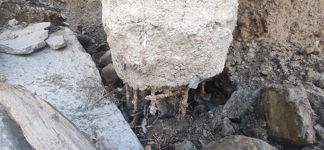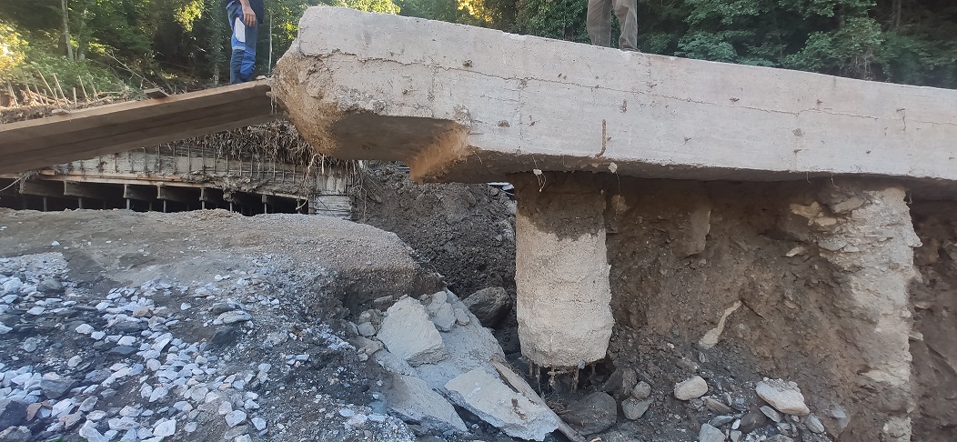 Όπως μπορεί να παρατηρήσει κανείς, το νερό δεν πέρασε μέσα από την υποτυπώδη κατασκευή της γέφυρας, αφού όχι μόνο ήταν στο στάδιο καλουπώματος και τα καλούπια έφραξαν την διατομή, αλλά και η θέση της αποδείχτηκε λανθασμένη και η διατομή μικρή. Δίπλα ακριβώς υπάρχει μια συστοιχία πασσάλων. Ο πρώτος και πιο σημαντικός, έχει βάθος μόλις 2 μέτρα αντί για 10, και συγκρατείται από τους υπόλοιπους. Η καταστροφή αποκάλυψε το βάθος του και την ανυπαρξία οποιουδήποτε ελεγκτικού μηχανισμού.
