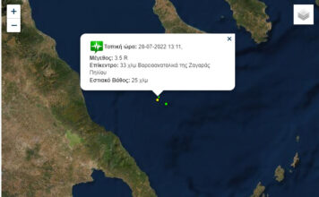 Σεισμός 3,5 Ρίχτερ βορειοανατολικά της Ζαγοράς