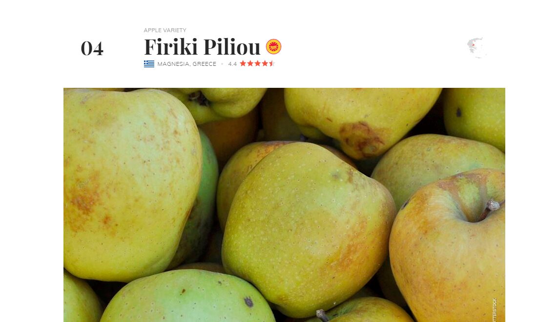 Ιδιαίτερη θέση όμως κατέκτησε και το γνωστό πηλιορείτικο φυρίκι, λαμβάνοντας τη 4η θέση σε όλο τον κόσμο. Τα μήλα αυτά, όπως αναφέρει η ιστοσελίδα, προέρχονται από δέντρα του είδους Malus domestica Borkh που φύονται εντός των ορίων της Πορταριάς, της Μακρινίτσας, της Ζαγοράς, της Αγριάς, της Αρτέμιδας, του Μουρεσίου, των Μηλεών και των Αφετών. Είναι ένα διάσημο μικρού έως μεσαίου μεγέθους μήλο με μακρόστενο σχήμα.