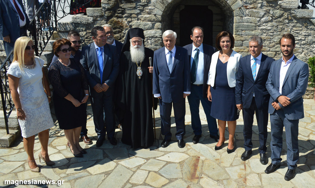 Στη Δοξολογία στον ιστορικό ναό του Αγίου Γεωργίου της Ζαγοράς ο Μητροπολίτης Δημητριάδος Ιγνάτιος χάρισε στον κ. Παυλόπουλο την εικόνα του Οσίου μάρτυρος Τριαντάφυλλου, τοπικού αγίου, που θεωρείται προστάτης της περιοχής και τον χρυσό σταυρό της Μητροπόλεως Δημητριάδος.