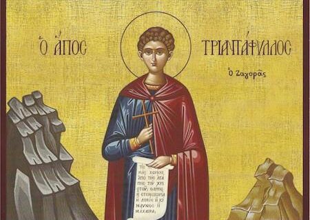 “Θείας πίστεως έχων τήν χάριν, χαίρων ήθλησας ανδρειοφρόνως, Νεομάρτυς Χριστού Τριαντάφυλλε. όθεν ως ρόδον ευφραίνεις ηδύπνευστον, τήν Εκκλησίαν τη Θεία αθλήσει σου. Μάρτυς ένδοξε, Χριστόν τόν Θεόν ικέτευε, δωρήσασθαι ημίν τό μέγα έλεος.”