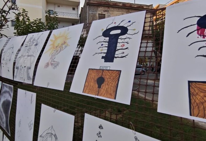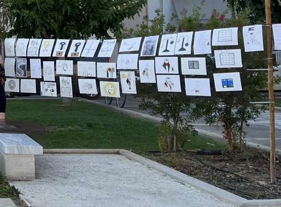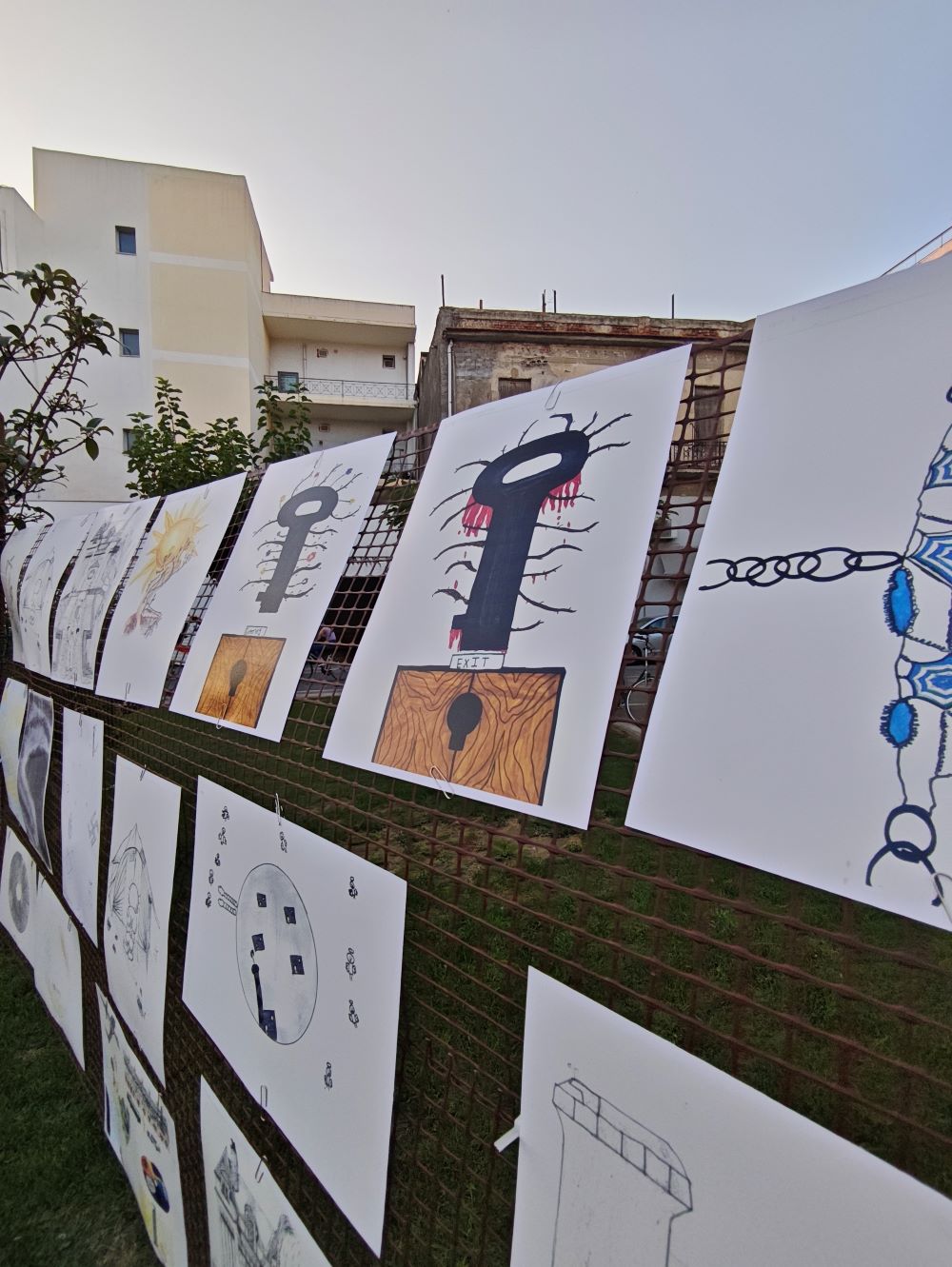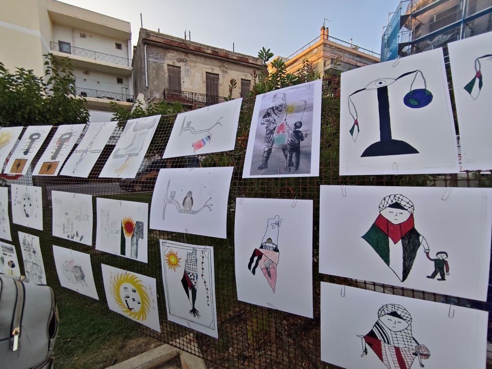 Δεκάδες ζωγραφιές παιδιών από τη Δυτική Όχθη περίμεναν να συναντήσουν τα μάτια του κοινού, με το θέμα να αναφέρεται στο πώς φαντάζονταν οι μικροί Παλαιστίνιοι ότι θα είναι η περιοχή όπου διαμένουν σε περίπου 100 χρόνια.