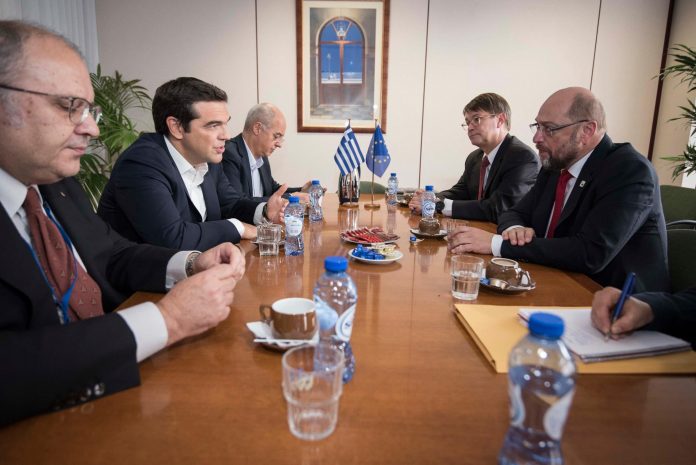 Η ανάγκη τήρησης των συμφωνιών για τη βιωσιμότητα του ελληνικού χρέους ήταν το κεντρικό μήνυμα της συνάντησης του πρωθυπουργού, Αλέξη Τσίπρα, με τον πρόεδρο του Ευρωπαϊκού Κοινοβουλίου, Μάρτιν Σουλτς, λίγο πριν την έναρξη των εργασιών της συνόδου κορυφής της ΕΕ, σήμερα στις Βρυξέλλες, σύμφωνα με κυβερνητικές πηγές.