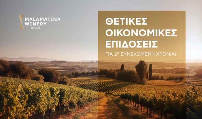 Αύξηση του κύκλου εργασιών και της κερδοφορίας της για δεύτερη συνεχόμενη χρονιά σημειώνει η Οινοποιία Μαλαματίνα το 2023, επεκτείνοντας στρατηγικά τις δραστηριότητές της και διατηρώντας δυναμική τροχιά ανάπτυξης, υπό τη νέα της διοίκηση.