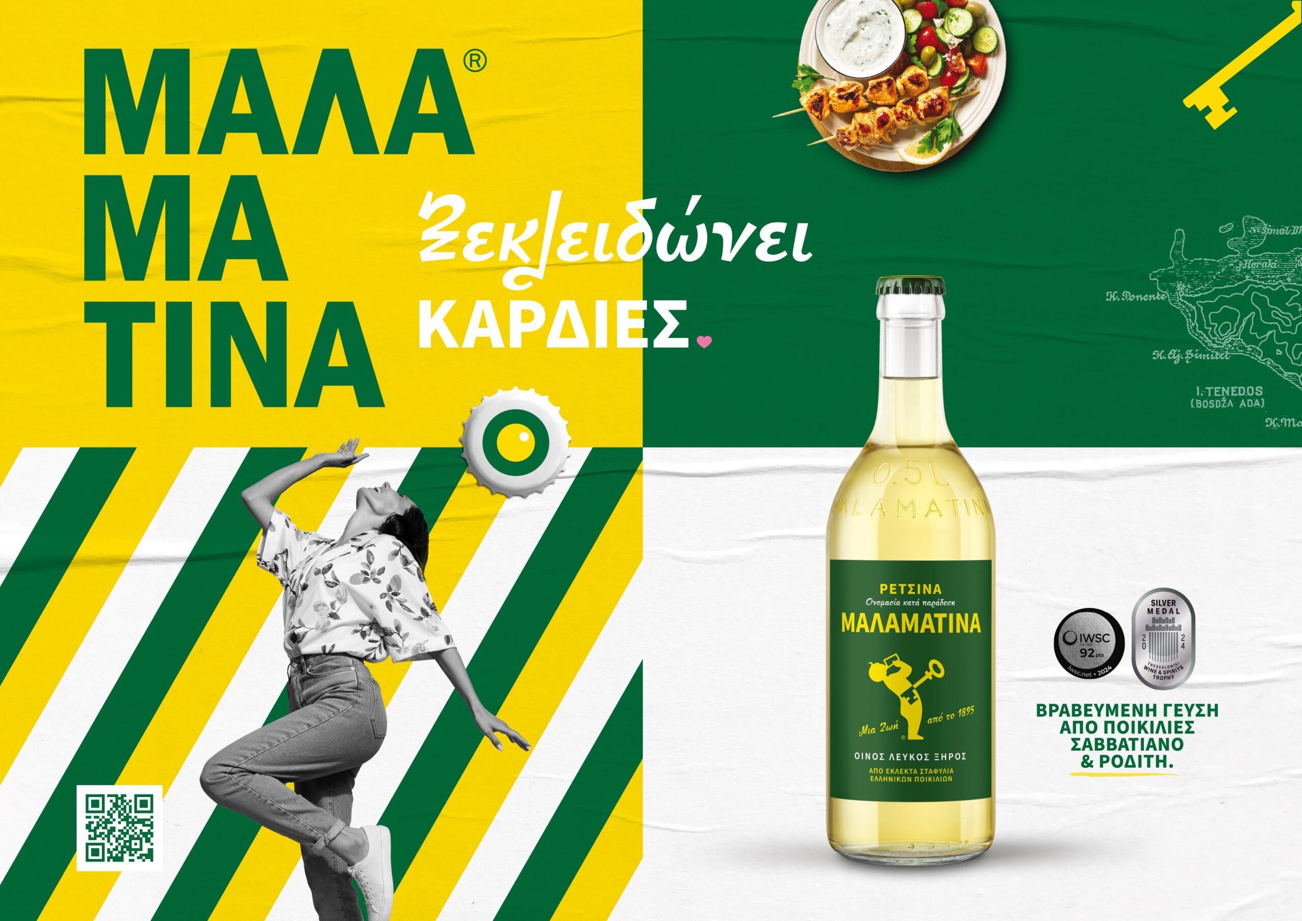 Με κεντρικό μήνυμα «Ξεκλειδώνει καρδιές», τοποθετείται εκ νέου στον οινικό χάρτη, ως μια διαχρονική και σύγχρονη ρετσίνα που εμπνέει παρέες κάθε ηλικίας, σε κάθε γωνιά της Ελλάδας. Η Ρετσίνα Μαλαματίνα πρωταγωνιστεί σε στιγμές χαράς, γίνεται η αφορμή να «ξεκλειδώσουν» νέες γνωριμίες, να ειπωθούν αυθεντικές ιστορίες και φέρνει τους ανθρώπους πιο κοντά στη δική τους αλήθεια!