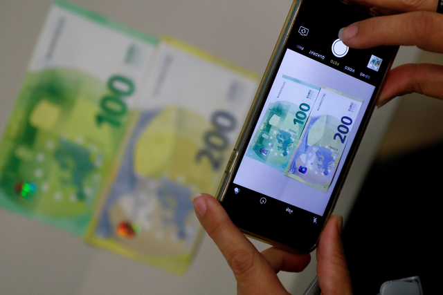 Τα χαρτονομίσματα των 100 και 200 ευρώ είναι «εξοπλισμένα» με νέα, καινοτόμα χαρακτηριστικά ασφαλείας. Οι έλεγχοι -αφής, οπτικοί και εξέταση υπό γωνία- επιτρέπουν τη γρήγορη και εύκολη εξακρίβωση γνησιότητας.