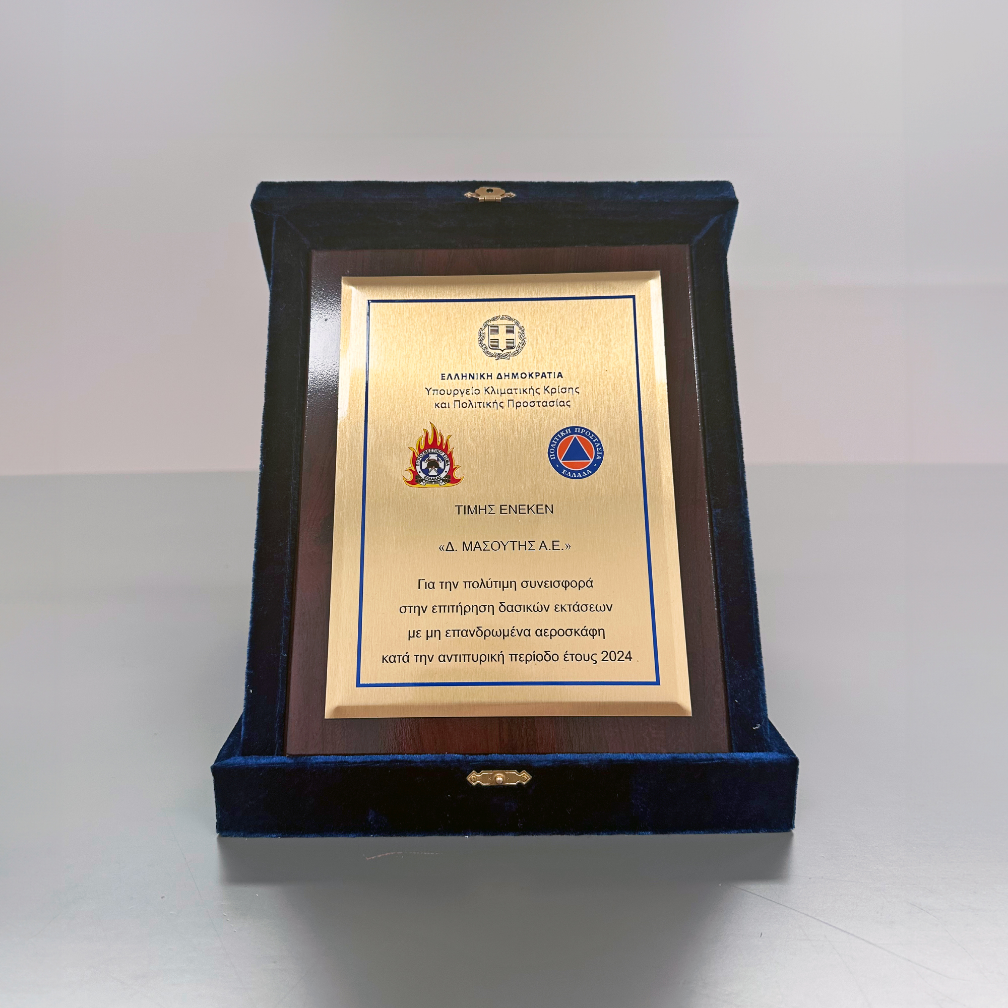 Σε εκδήλωση με θέμα την Αποτίμηση της Αντιπυρικής Περιόδου 2024 βραβεύθηκε η «Διαμαντής Μασούτης Α.Ε.», για την πολύτιμη υποστήριξή της προς το έργο του Υπουργείου Κλιματικής Κρίσης & Πολιτικής Προστασίας.