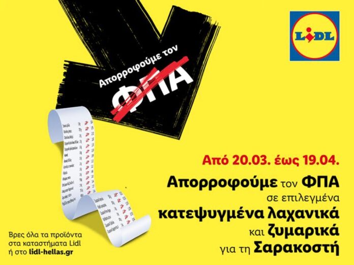 Αναγνωρίζοντας τη συνεχιζόμενη πίεση στα εισοδήματα των Ελλήνων καταναλωτών, η Lidl Ελλάς προχωρά σε μία ακόμα ουσιαστική παρέμβαση που διασφαλίζει πως οι πελάτες της μπορούν να απολαμβάνουν ποιοτικά προϊόντα στις ήδη χαμηλές τιμές της εταιρείας, χωρίς επιπλέον κόστος ΦΠΑ.