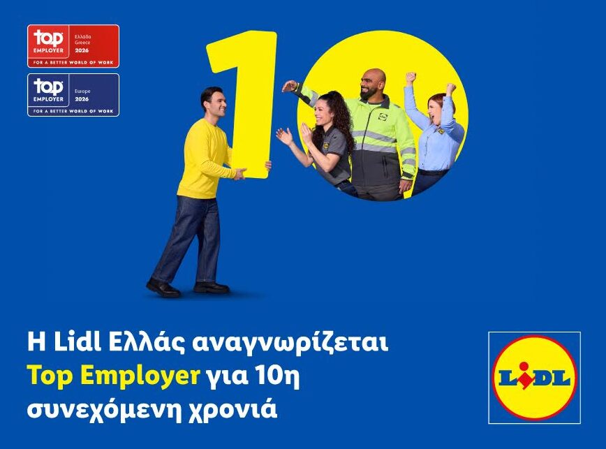 Δέκα συνεχόμενες χρονιές Top Employer για τη LidlΕλλάς. Μια διαδρομή που χτίστηκε από συνέπεια, ομαδική προσπάθεια και καθημερινές επιλογές που έχουν στο επίκεντρο τον άνθρωπο.