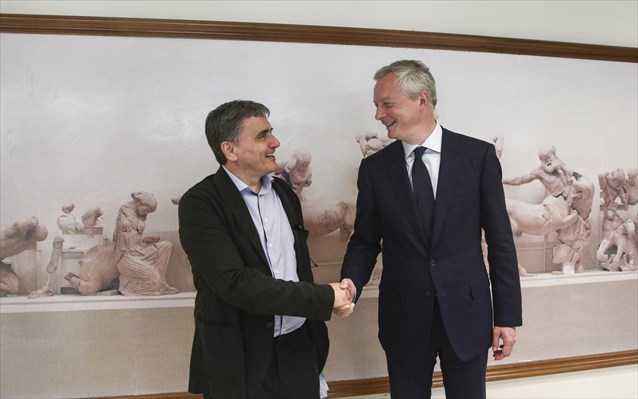 Την εκτίμηση ότι τις επόμενες δύο ημέρες θα ανοίξει ο δρόμος για να επιτευχθεί συμφωνία στο Eurogroup εξέφρασε ο υπουργός Οικονομικών της Γαλλίας Μπρούνο Λε Μερ μετά τη συνάντησή του με τον ομόλογό του Ευκλείδη Τσακαλώτο. Σύμφωνα με πληροφορίες ο Γάλλος υπουργός κομίζει στην Αθήνα την πρόταση για ρήτρα ανάπτυξης σχετικά με την εξυπηρέτηση του χρέους, σε μια προσπάθεια εύρεσης συμβιβασμού κυρίως μεταξύ Γερμανίας και ΔΝΤ.