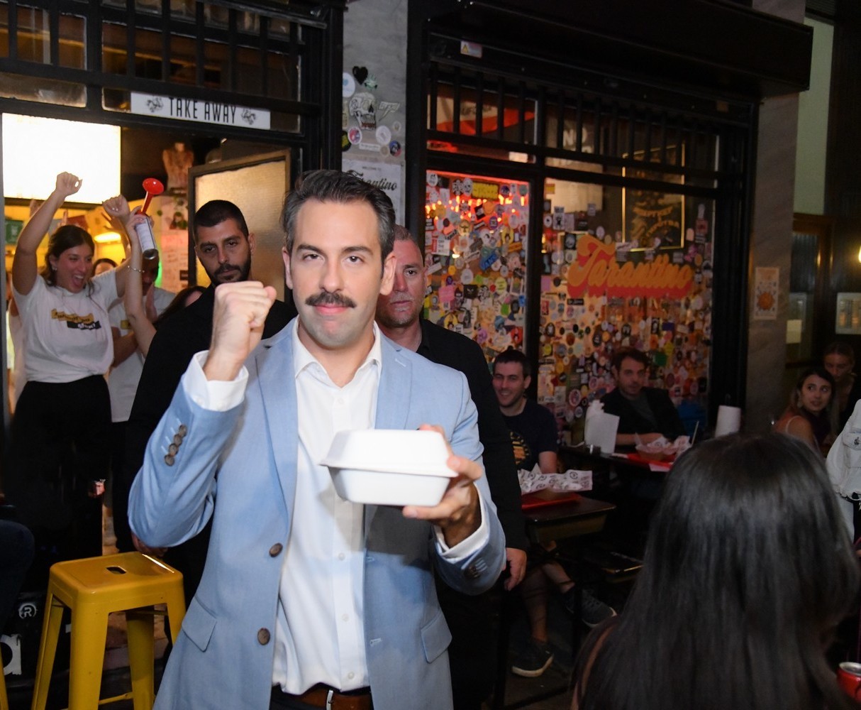 Ο ήρωας της viral τηλεοπτικής διαφήμισης έκανε νέα εξόρμηση στη νυχτερινή Αθήνα, πριν από λίγες ημέρες, και επισκέφθηκε τρία καταστήματα σε Κουκάκι, Πετράλωνα και Κεραμεικό, όπου κέρασε τους θαμώνες burgers, κοκτέιλ και σφηνάκια.