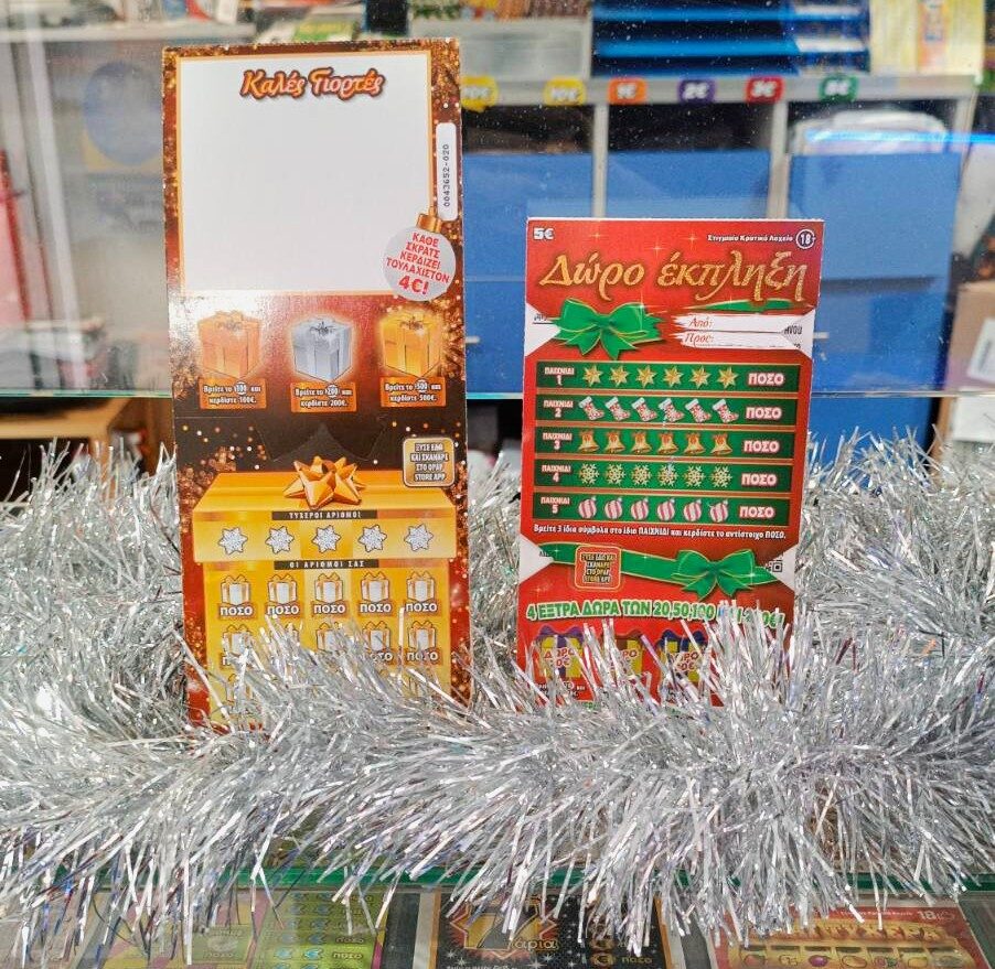 «Το παιχνίδι «ΔΩΡΟ ΣΚΡΑΤΣ» κοστίζει 10 ευρώ, με το μέγιστο έπαθλο που μπορεί να διεκδικήσει κάποιος να ανέρχεται σε 100.000 ευρώ. Κάθε λαχνός κερδίζει τουλάχιστον 4 ευρώ, ενώ διαθέτει ειδική περιοχή για ευχές και 3 περιοχές bonus. Το ΣΚΡΑΤΣ «ΔΩΡΟ ΕΚΠΛΗΞΗ» κοστίζει 5 ευρώ, μοιράζει μέχρι και 100.000 ευρώ, ενώ οι παίκτες έχουν 9 ευκαιρίες για κέρδη», συμπληρώνει.
