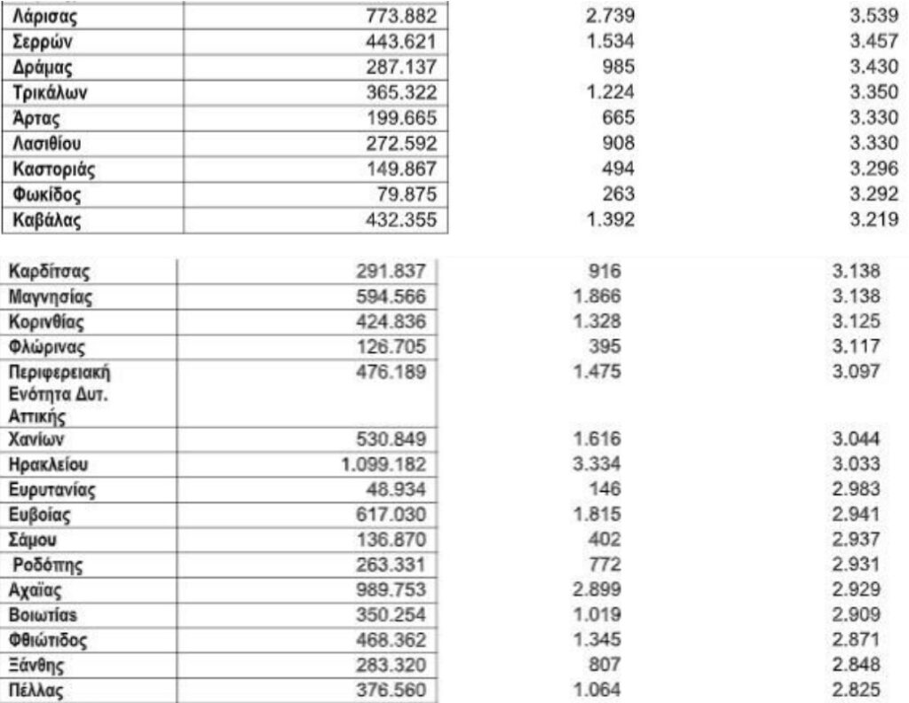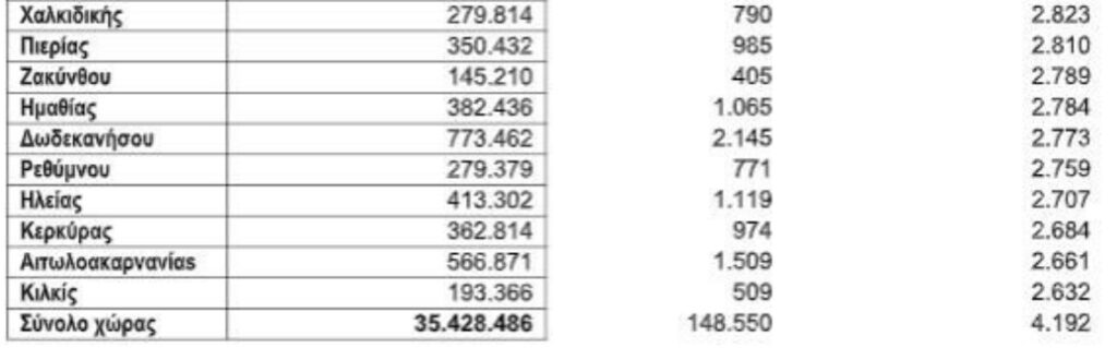 Ακολουθούν οι διαμένοντες στα ανατολικά της Αττικής, και την πεντάδα συμπληρώνουν οι Χιώτες, και οι νομοί Αρκαδίας και Κυκλάδων.