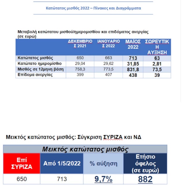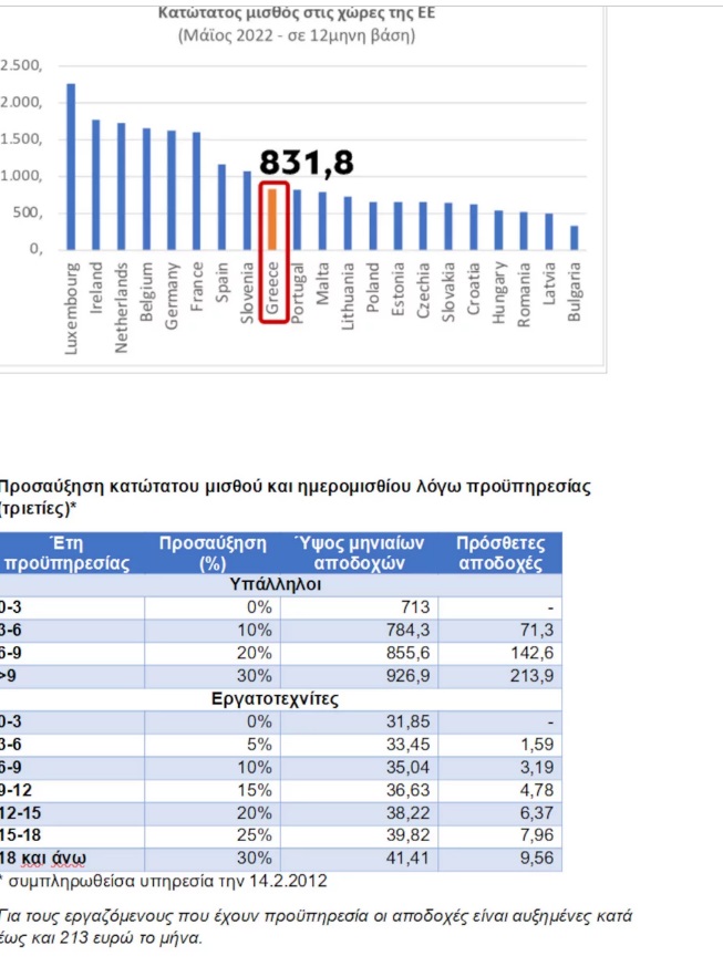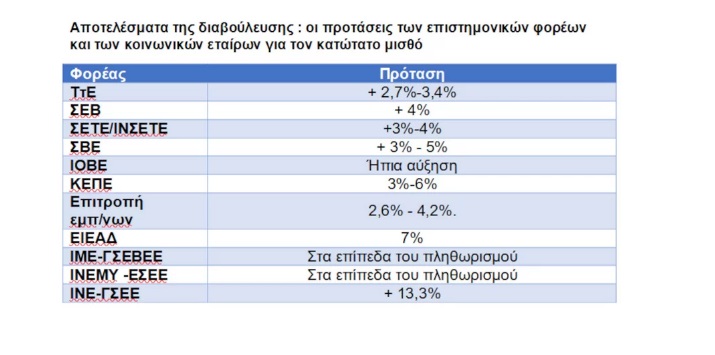 Αναλυτικοί πίνακες για τη διαμόρφωση του κατώτατου μισθού