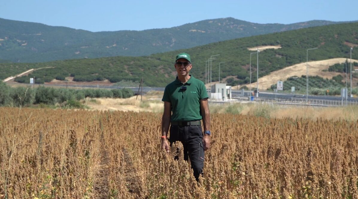 Ο αγρότης από τη ΦθιώτιδαΓιώργος Παπαευσταθίουεξηγεί γιατί επέλεξε φέτος να καλλιεργήσει κινόα: Με την εταιρία του Κ.Β. Μάρκου που συνεργαζόμαστε χρόνια,αφού καλλιεργούμε βαμβάκια στην περιοχή της Φθιώτιδας, μας προτείνανε μια νέα καινοτόμο καλλιέργεια και είπαμε να την δοκιμάσουμε. Μετά τη συγκομιδή αποδεικνύεται ότι η απόφαση μας δικαιώθηκε.Αρχικά σκεφτήκαμε ότι πρόκειται για τρόφιμο,το οποίο το αναζητά η αγορά, επομένως και μέσω της συμβολαιακής γεωργίας αυτό δεν θα μας μείνει απούλητο.Εμείς οι νέοι που μείναμε πίσω στα χωριά μας, στη γη αντιμετωπίζουμε πολλές δύσκολες καταστάσεις. Όσοι μείναμε, πρέπει να βρούμε τον τρόπο και τη λύση μόνοι μας για να προχωρήσουμε παρακάτω.Έχουμε εμπιστοσύνη στην εταιρία, μας συμβουλεύει διαρκώς και μας δείχνει ότι σε αυτή τη νέα προσπάθεια δεν είμαστε μόνοι».