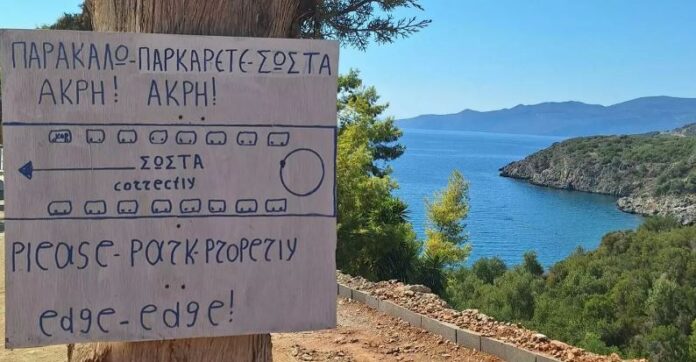 Τον γύρο του διαδικτύου κάνει τις τελευταίες ώρες μία χειροποίητη πινακίδα σε παραλία, η οποία εύστοχα προσπαθεί να κατευθύνει τους πολίτες στο να παρκάρουν σωστά, ώστε να μπορεί ο χώρος να φιλοξενήσει περισσότερα αυτοκίνητα.