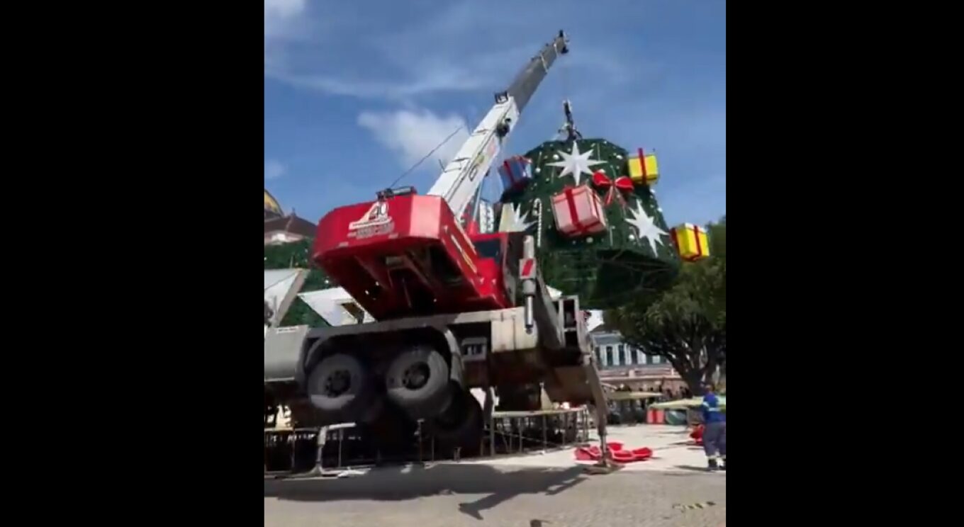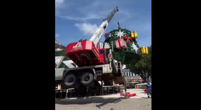 Τραγική κατάληξη είχε η επιχείρηση για την τοποθέτηση τεχνητού χριστουγεννιάτικου δέντρου στην πόλη Μανάους της Βραζιλίας την Κυριακή όταν ο γερανός που σήκωνε ένα από τα κομμάτια, δεν άντεξε το βάρος και σηκώθηκε στις δύο ρόδες με αποτέλεσμα τον τραγικό θάνατο ενός 40χρονου εργάτη.
