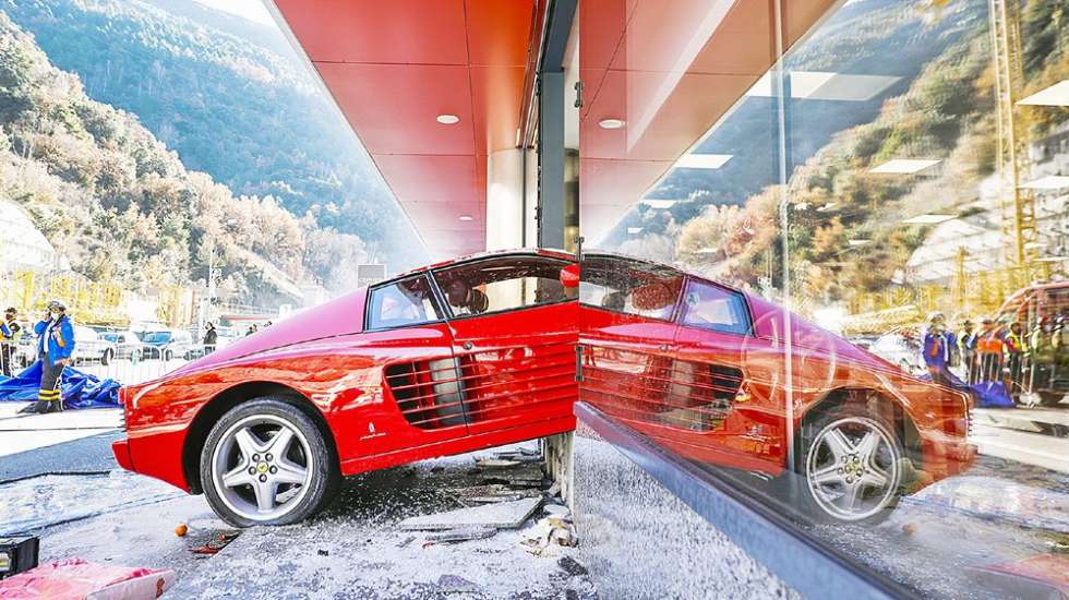 Οι καταναλωτές που έκαναν τις χριστουγεννιάτικες αγορές τους σε ένα εμπορικό κέντρο στην Ανδόρα έπαθαν σοκ όταν μια Ferrari 512 TR πέρασε μέσα από την βιτρίνα του καταστήματος.