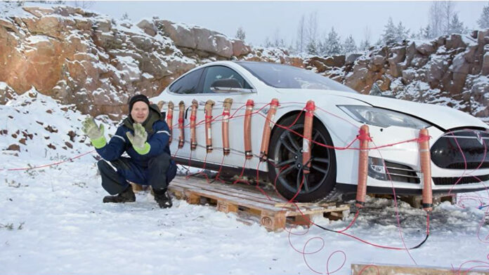 Το φινλανδικό κανάλι Pommijätkät (σ.σ.: Οι τύποι με τις βόμβες) δημοσίευσε video στο οποίο ένα Tesla Model S ανατινάζεται με 30 kg δυναμίτη!