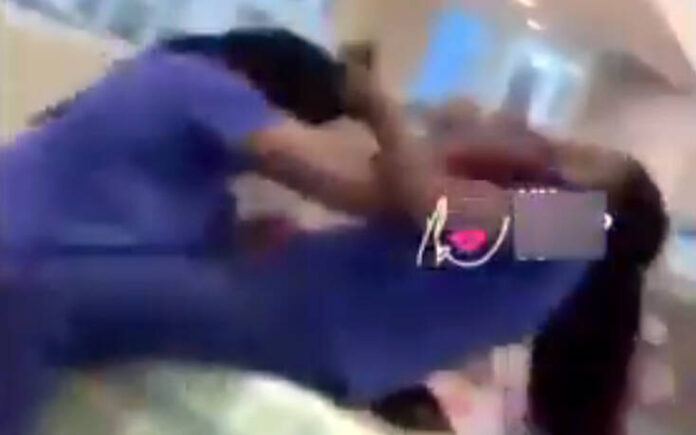 Στο βίντεο βλέπουμε τις δύο γυναίκες να αγνοούν παντελώς τα περιοριστικά μέτρα και να βγάζουν τις μάσκες τους για να αναμετρηθούν σε κάτι που έμοιαζε με ερασιτεχνικό MMA.