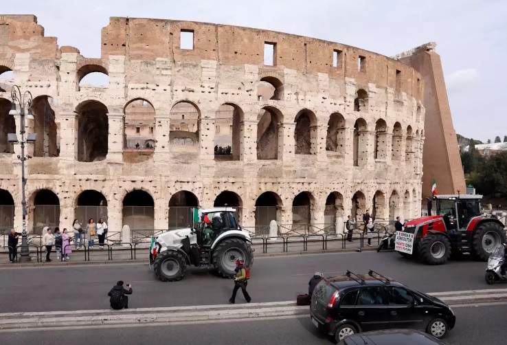 Έφτασαν στη Ρώμη τέσσερα τρακτέρ αγροτών. Μάλιστα, διέσχισαν κεντρικούς δρόμους κοντά στο Κολοσσαίο, τον σιδηροδρομικό σταθμό «Τέρμινι» και τον χώρο του πρώην ρωμαϊκού σταδίου «Τσίρκο Μάσιμο».