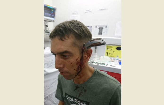 Ανέβηκε στο ποδήλατό του και διένυσε απόσταση 800 μέτρων, φτάνοντας σε μία κλινική. “Ήταν συνταρακτικό να τον βλέπεις με ένα μαχαίρι καρφωμένο στην μία πλευρά του κρανίου του. Ήταν πολύ ήρεμος και είχε διαύγεια, αν και αιμορραγούσε πολύ. Ρώτησε πολύ ευγενικά αν υπήρχε ελεύθερος γιατρός για να τον δει. Ήταν πολύ τυχερός γιατί αν και το μαχαίρι καρφώθηκε στο κρανίο του, η λεπίδα λύγισε κατά την πρόσκρουση στο κόκκαλο και πήγε προς το πρόσωπό του, έξω από το κρανίο. Ήταν πολύ τυχερός γιατί η λεπίδα τον χτύπησε λάθος σημείο για να τον σκοτώσει” δήλωσε ο επικεφαλής γιατρός της κλινικής.
