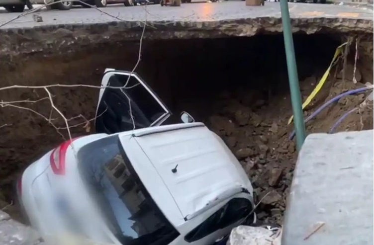 Στο σημείο έφτασαν άμεσα οι Αρχές, οι οποίες διαπίστωσαν πως η καθίζηση του εδάφους κάτω από την άσφαλτο οφείλεται σε κατάρρευση υπονόμου και ζημιά σε αγωγό ύδρευσης, με αποτέλεσμα να υπάρχει μεγάλη διαρροή νερού