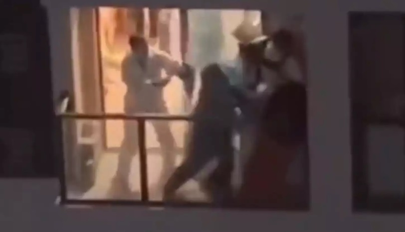 «Μην σκαρφαλώνεις πάνω μου, τράβα του το πόδι», ακούγεται να λέει κάποιος από τους οπλισμένους. Ο θετικός στον ιό άνδρας αντιστέκεται σθεναρά. Αφού κάποιος άλλος ζητά μαχαίρι και ένας οπλισμένος ζητά το όνομά του, ο άνδρας πέφτει στο έδαφος και δεν κινείται.