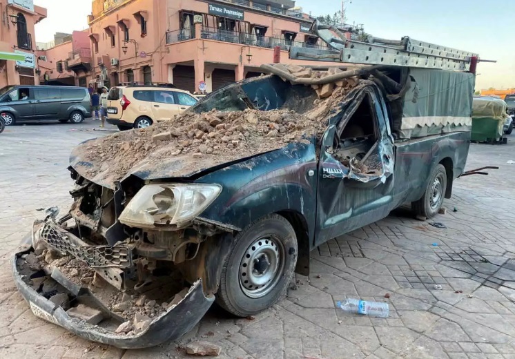 Συντρίμμια σπιτιών και πέτρες πλάκωσαν αυτοκίνητα ενώ κατέρρευσε και ένα κομμάτι ενός μιναρέ στην διάσημη πλατεία Τζεμάα ελ Φνα, στη Μεδίνα του Μαρακές, τραυματίζοντας δύο ανθρώπους.