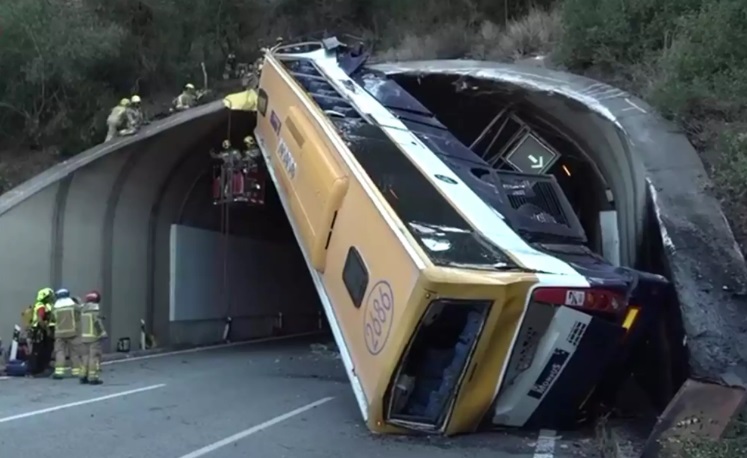 Ένα απίστευτο ατύχημα σημειώθηκε σήμερα (16.07.2024), όταν ένα λεωφορείο με προορισμό τη Βαρκελώνη κατέληξε σε σχεδόν κάθετη θέση σε σήραγγα της Πινέδα ντε Μαρ.