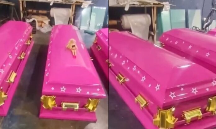 Το γραφείο τελετών Alpha and Omega στο Ahuachapán του Ελ Σαλβαδόρ, προσφέρει ένα φέρετρο με θέμα τη Barbie και προηγήθηκε της τάσης, λανσάροντας το ροζ φέρετρό τους πριν από περίπου ένα χρόνο.