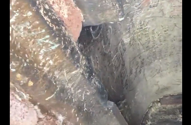 Το βίντεο δείχνει ότι στη στήλη στήριξης φαίνονται graffiti με ονόματα, σχήματα που έχουν χαραχτεί με αιχμηρό αντικείμενο, σε εσωτερικό χώρο.
