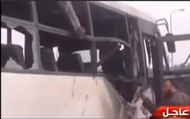 Στις εικόνες που μεταδόθηκαν από τη δημόσια τηλεόραση της Αιγύπτου διακρίνεται το λεωφορείο που έχει γαζωθεί από σφαίρες, με σπασμένα τα παράθυρα και το παρμπρίζ.