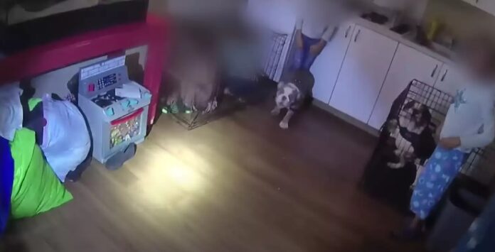Οι αστυνομικοί μπήκαν αρχικά στο υπνοδωμάτιο. Εκεί βρήκαν 6 παιδιά – ηλικίας 2 έως 11 ετών – μόνα τους με δύο σκυλιά. Δύο από τα παιδιά, ένας 11χρονο αγόρι και ο 9χρονος αδελφός του, ήταν κλειδωμένα μέσα σε ένα κλουβί.