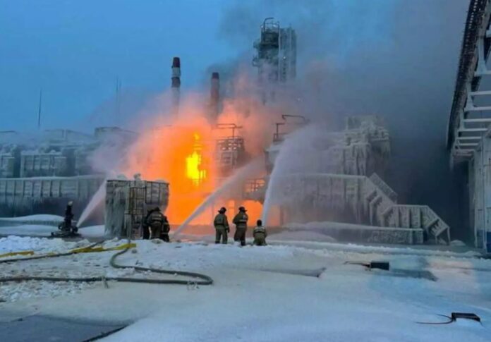 Φωτιά εκδηλώθηκε σε τερματικό σταθμό φυσικού που ανήκει στη Novatek, τη μεγαλύτερη εταιρία παραγωγής υγροποιημένου φυσικού αερίου στη Ρωσία, όπως δήλωσαν περιφερειακοί αξιωματούχοι, εν μέσω πληροφοριών για εκρήξεις και παρουσία ουκρανικού μη επανδρωμένου αεροσκάφους (drone) στην περιοχή.