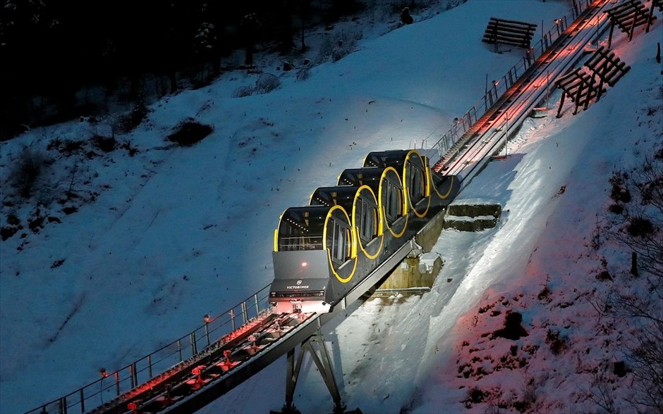 Στη διάθεση του κοινού τέθηκε το πιο απότομο τελεφερίκ του κόσμου, στο ορεινό χωριό Στοος, κοντά στη λίμνη της Λουκέρνης, στην κεντρική Ελβετία.