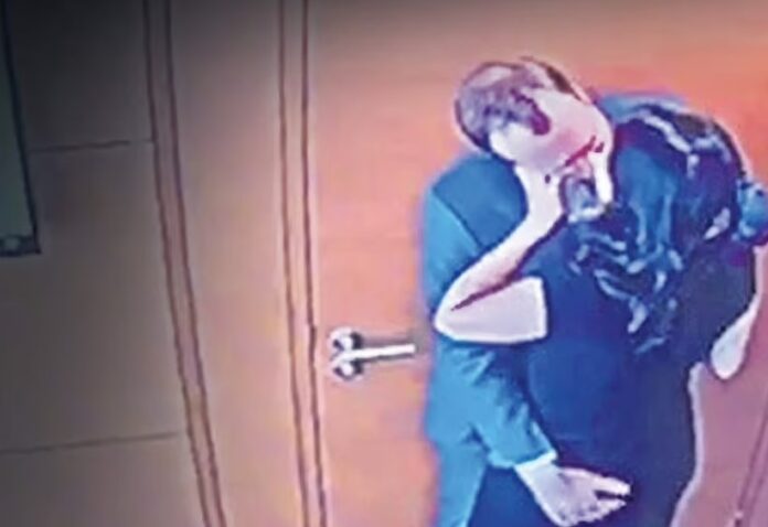 Οι αισθησιακές λήψεις από την κάμερα του κτιρίου που τους απεικονίζει να φιλιούνται παθιασμένα λήφθηκαν στις 6 Μαΐου.