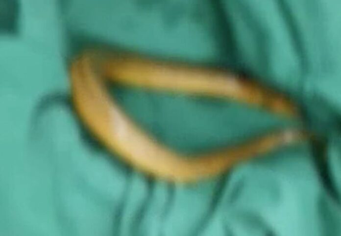Σύμφωνα με την dailymail.co.uk πρόκειται για χέλι, μήκους σχεδόν 20 εκατοστών, το οποίο όχι μόνο ήταν ακόμα ακόμα ζωντανό, αλλά κατάφερε να φτάσει μέχρι την κοιλιά του άτυχου άνδρα, ο οποίος λίγο έλειψε να βρει τραγικό θάνατο, αναζητώντας εναλλακτικές ιατρικές θεραπείες.