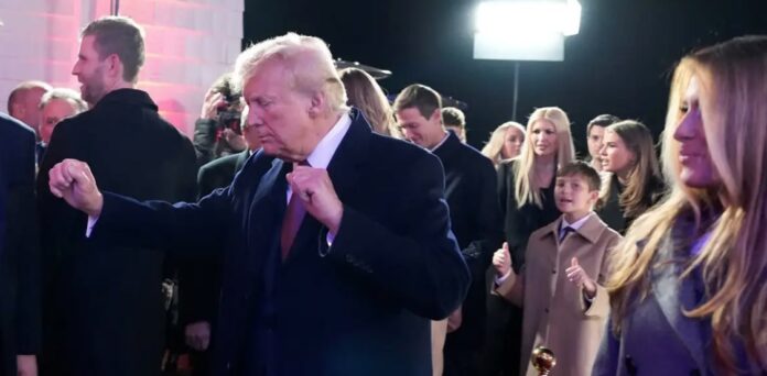 Ενώ οι Village People τραγουδούσαν από την σκηνή της αρένας, ο Ντόναλντ Τραμπ με παιχνιδιάρικο ύφος χόρεψε το τραγούδι που στιγμάτισε τόσο την νίκη του όσο και την προεκλογική εκστρατεία του.
