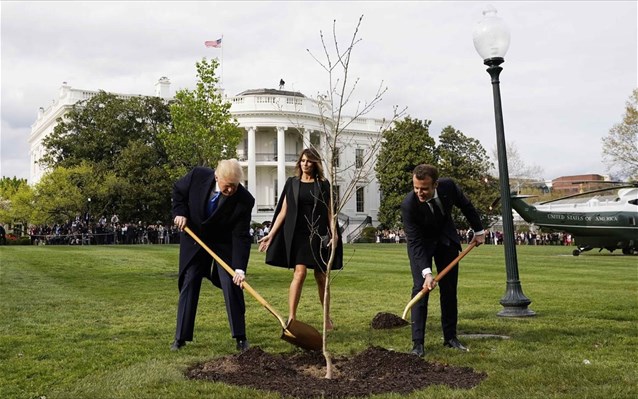 Κατά την επίσκεψή του στην Ουάσινγκτον, την περασμένη εβδομάδα, ο κ. Μακρόν μαζί με τον κ. Τραμπ έριξαν λίγο χώμα στις ρίζες μιας μικρής βελανιδιάς.