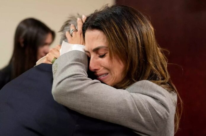 Αγκαλιάστηκαν σφιχτά ανακουφισμένοι για αρκετά δευτερόλεπτα, και με δάκρυα στα μάτια ο ηθοποιός αγκάλιασε και τους δύο δικηγόρους του για να τους ευχαριστήσει.