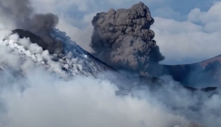 Τεράστια σύννεφα τέφρας και καπνού καταγράφηκαν να εκτοξεύονται από το όρος Αίτνα στη Σικελία στις 27 Δεκεμβρίου, ενώ σκιέρ χρησιμοποιούσαν τις πλαγιές κάτω από αυτό.