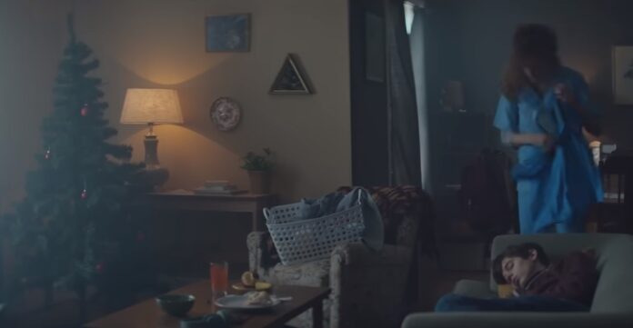 Στο σποτάκι θα δείτε μια μητέρα να ντύνεται για να φύγει για τη δουλειά της αφήνοντας πίσω ένα καλάθι με άπλυτα ρούχα, έναν νεροχύτη γεμάτο πιάτα, ένα αστόλιστο χριστουγεννιάτικο δέντρο και έναν έφηβο γιο να κοιμάται στον καναπέ με το τηλεχειριστήριο του παιχνιδιού του στο χέρι. Στη συνέχεια τον φιλά τρυφερά και φεύγει για το νοσοκομείο όπου εργάζεται.