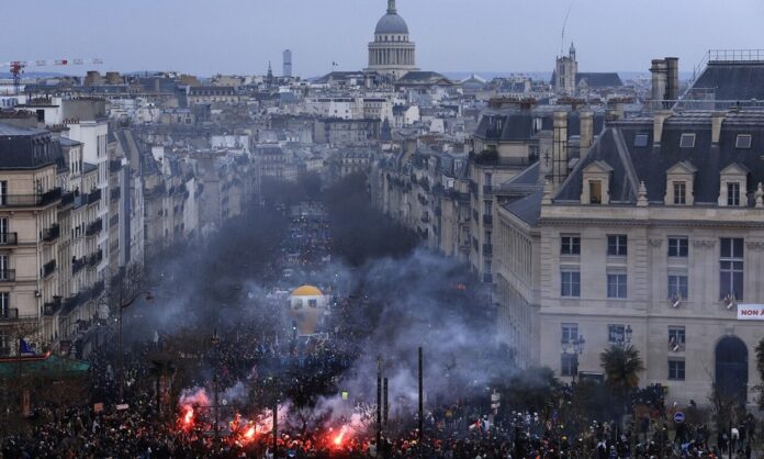 Οι διαδηλώσεις για το συνταξιοδοτικό που συνεχίζονται εδώ και εβδομάδες έγιναν πιο βίαιες αφότου η κυβέρνηση Μακρόν, η οποία δεν διαθέτει σαφή πλειοψηφία, «πέρασε» τη νομοθεσία στο κοινοβούλιο χωρίς ψηφοφορία, επιστρατεύοντας προεδρικό διάταγμα.