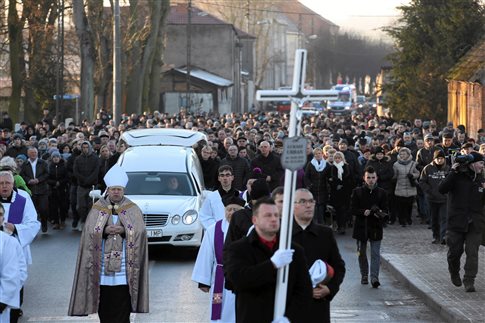 Εκατοντάδες συγκεντρώθηκαν στην μικρή εκκλησία στο Μπάνι, χωριό καταγωγής του Ούρμπαν στην βορειοδυτική Πολωνία, 15χλμ από την πολωνογερμανική μεθόριο, για να παρακολουθήσουν την επιμνημόσυνη δέηση, ενώ αρκετά φορτηγά σταθμευμένα σε κοντινή απόσταση κορνάρανε για να τιμήσουν τον 37χρονο οδηγό, όπως έδειξαν οι εικόνες που μετέδωσε ο ιδιωτικός τηλεοπτικός σταθμός TVN24.