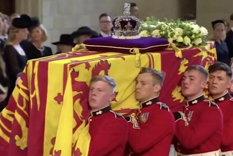 Η λαίδη Γκαμπριέλα Γουίνδσορ, ο πατέρας της οποίας, ο Πρίγκιπας Μιχαήλ του Κεντ, είναι ξάδερφος της Βασίλισσας Ελισάβετ, στεκόταν στην ουρά με άλλα μέλη της βασιλικής οικογένειας καθώς γινόταν η μεταφορά του φέρετρου της βασίλισσας. Λίγο αργότερα υπήρξε κάποια αναταραχή, με την λαίδη Γκαμπριέλα Γουίνδσορ να καταρρέει.