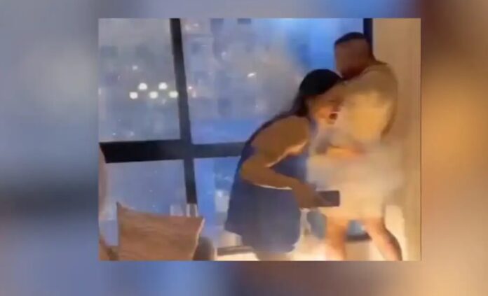 Κι ενώ το ζευγάρι φαίνεται να κοιτάξει έξω από το παράθυρο, ένα πυροτέχνημα σκάει στο στήθος της 27χρονης, με την ίδια να ουρλιάζει από τον πόνο και τον τρόμο.