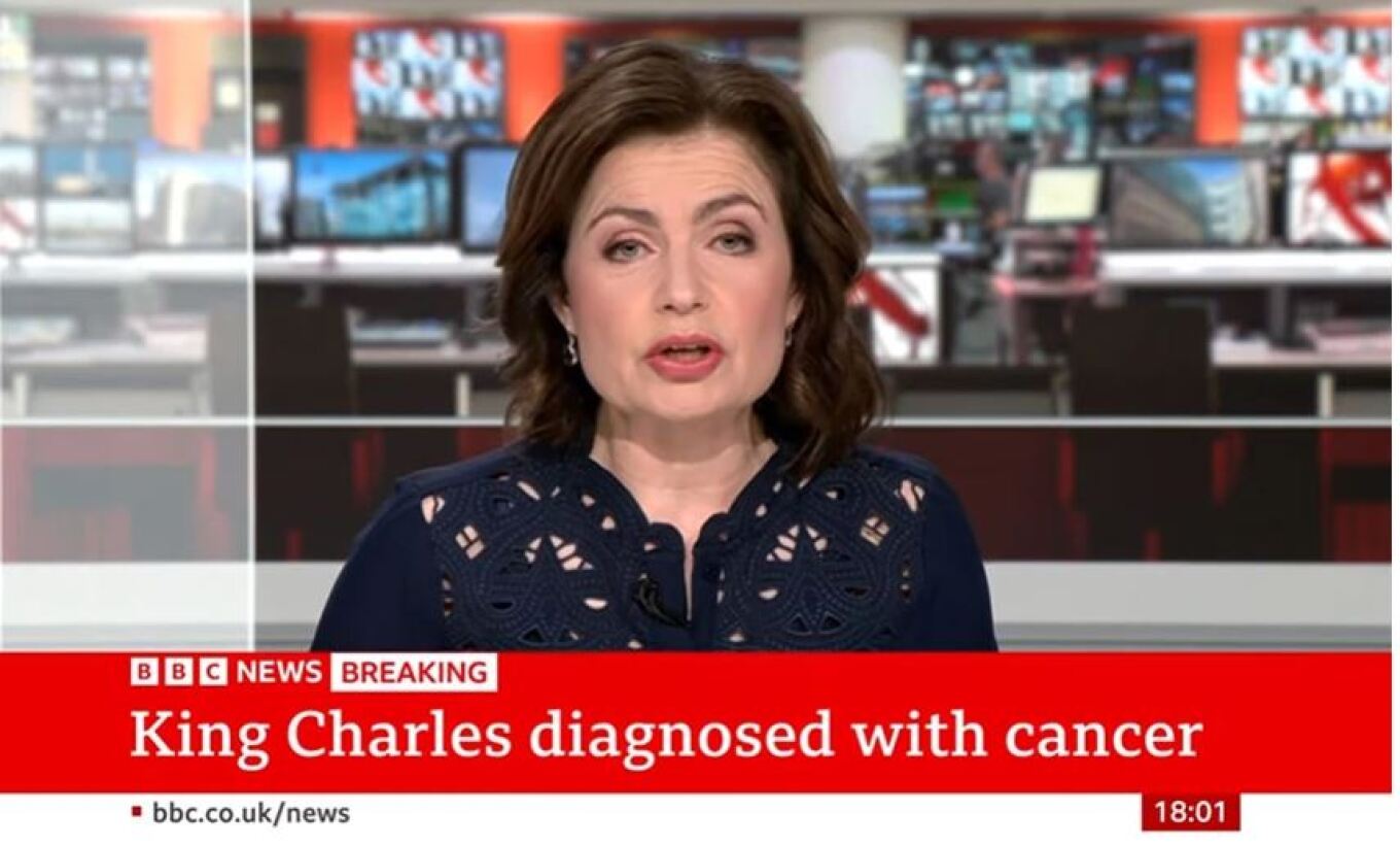 Το BBC με έκτακτο δελτίο στην τηλεόραση ενημέρωσε το κοινό πως ο βασιλιάς Κάρολος έχει καρκίνο. Η παρουσιάστρια διάβασε την ανακοίνωση του Μπάκιγχαμ ενώ στη συνέχεια η ρεπόρτερ σχολίασε πως η βασιλική οικογένεια και ο ίδιος ο Κάρολος σοκαρίστηκαν από τη διάγνωση, που έγινε 17 μήνες μετά την ανάληψη των καθηκόντων του.